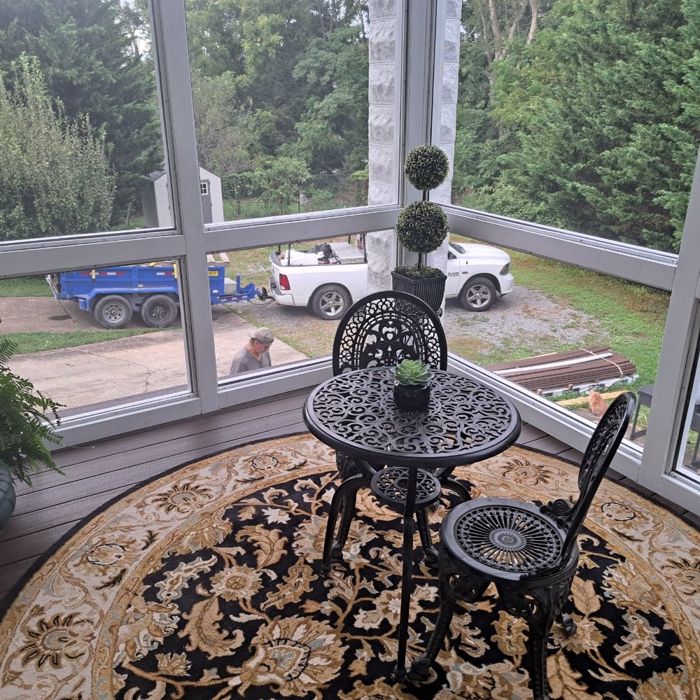 A backyard deck rebuild featuring custom-fitted screened porch panels and an integrated under-deck water deterrent system.