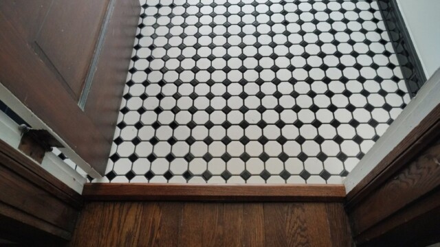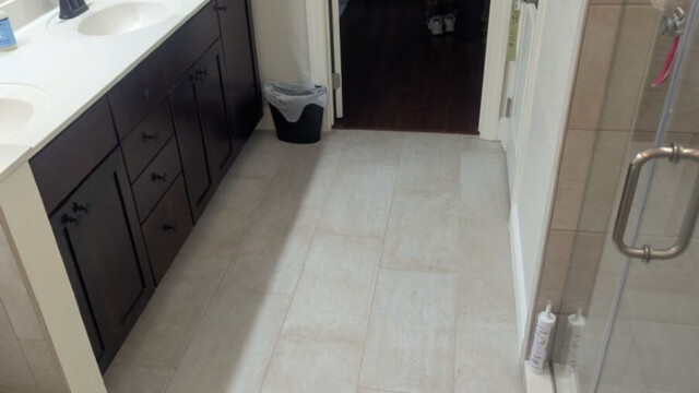 • Porcelain tile flooring; selective wall tile (e.g., shower walls to ceiling)