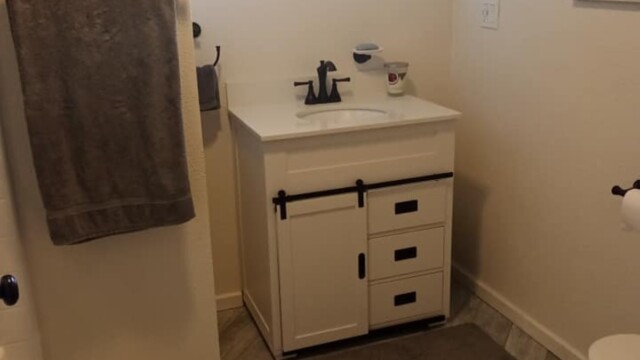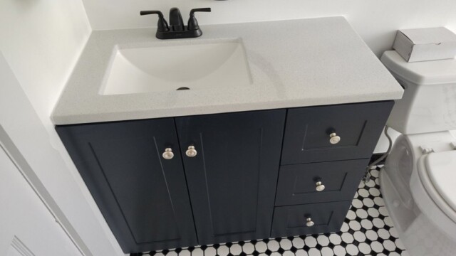 • Stock or ready-to-assemble vanity and tops (cultured marble / stock quartz)