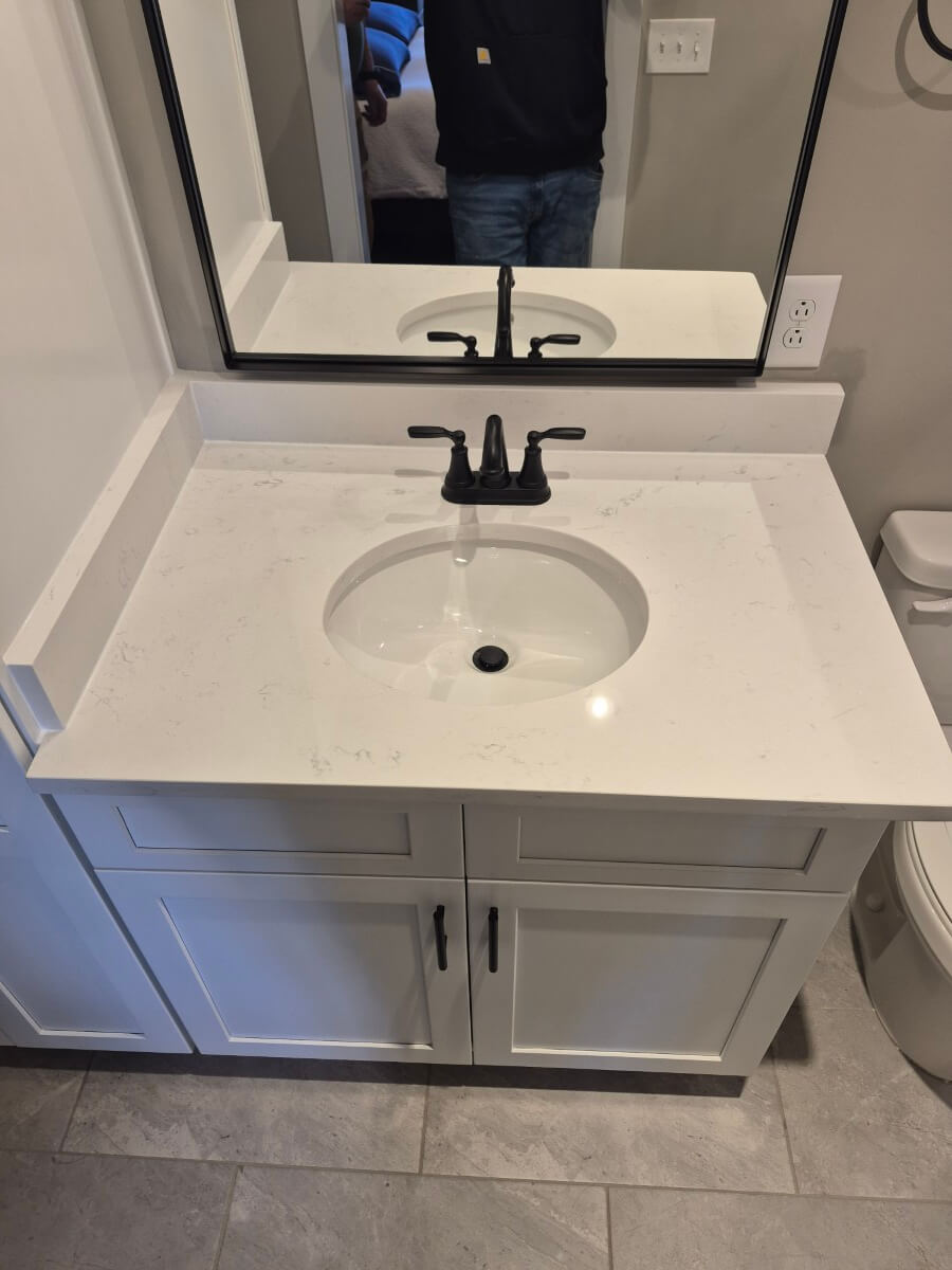 • Stock or ready-to-assemble vanity and tops (cultured marble / stock quartz)
