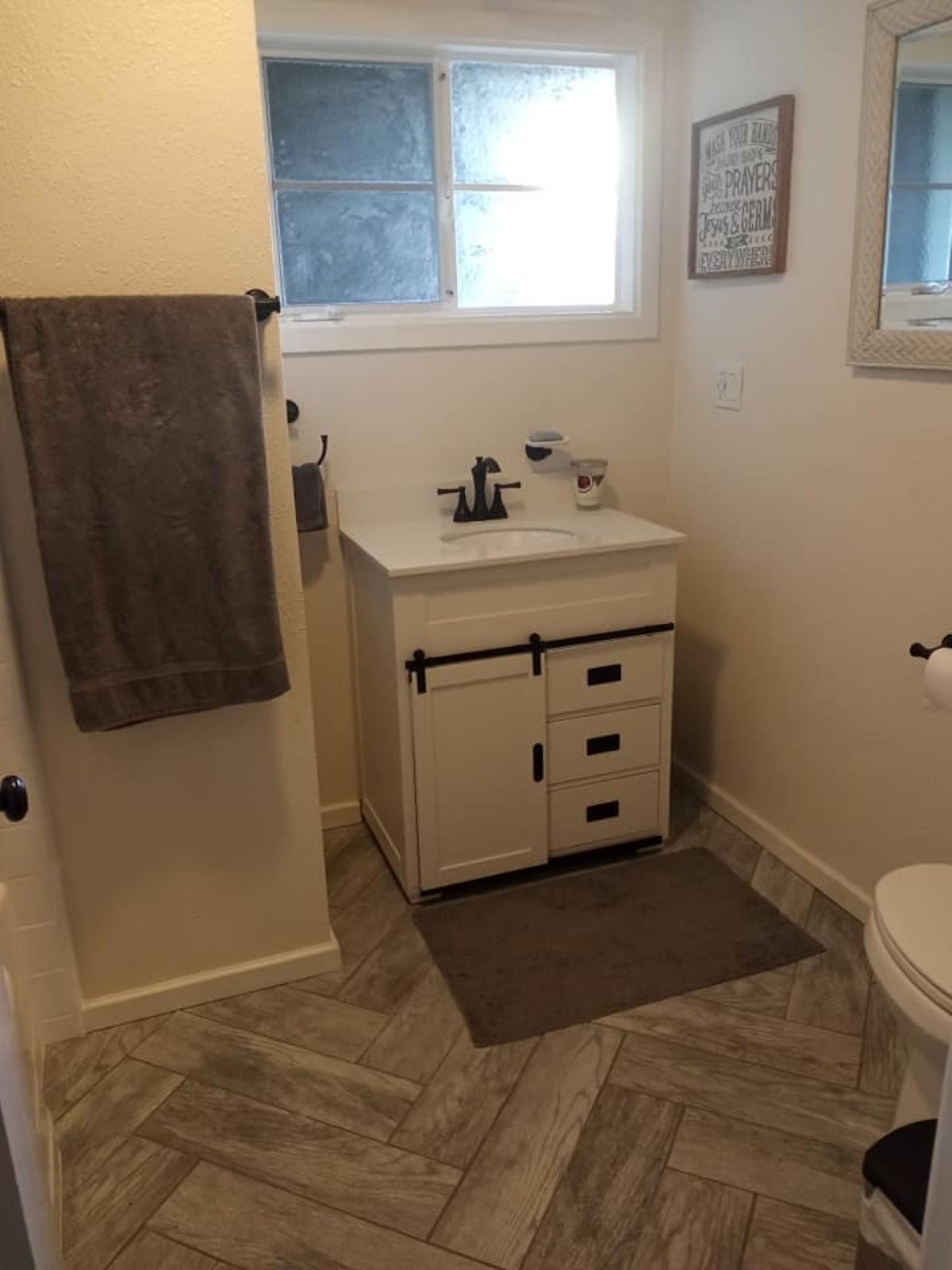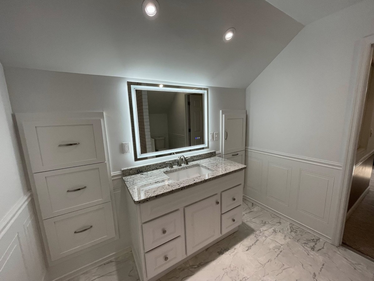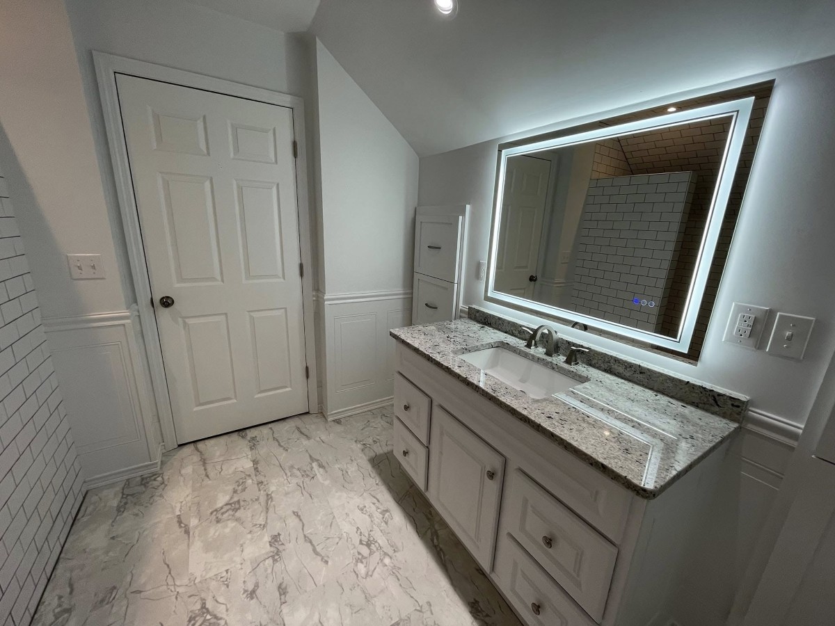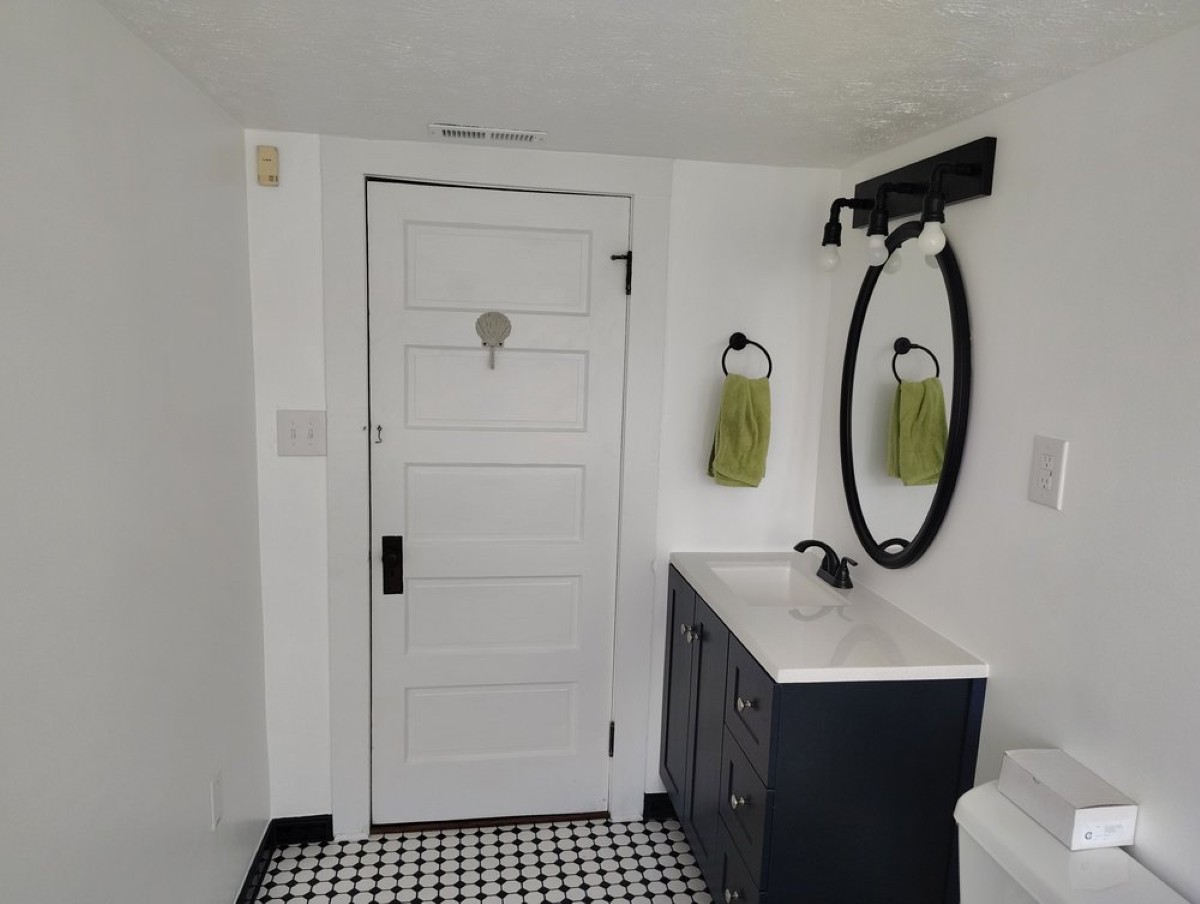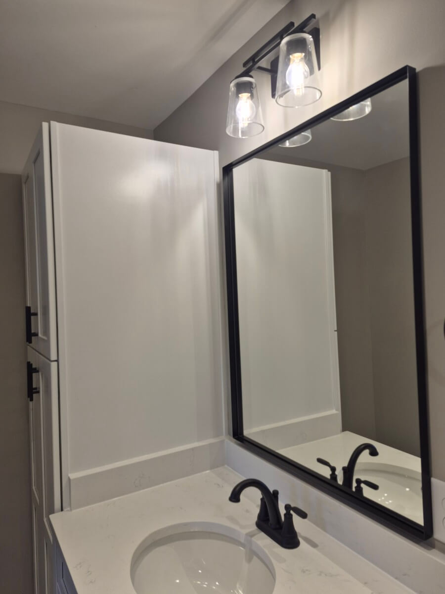 • Upgraded lighting (recessed + vanity), quiet vent fan, paint, trim