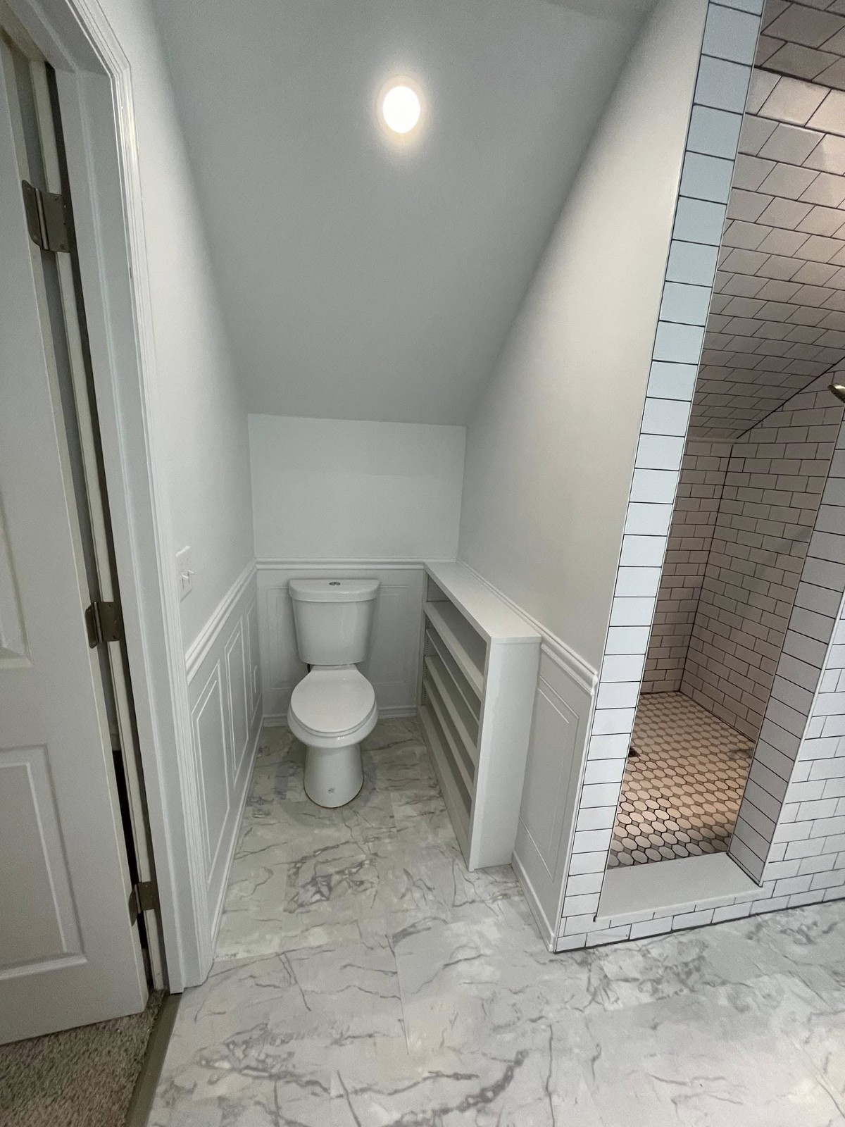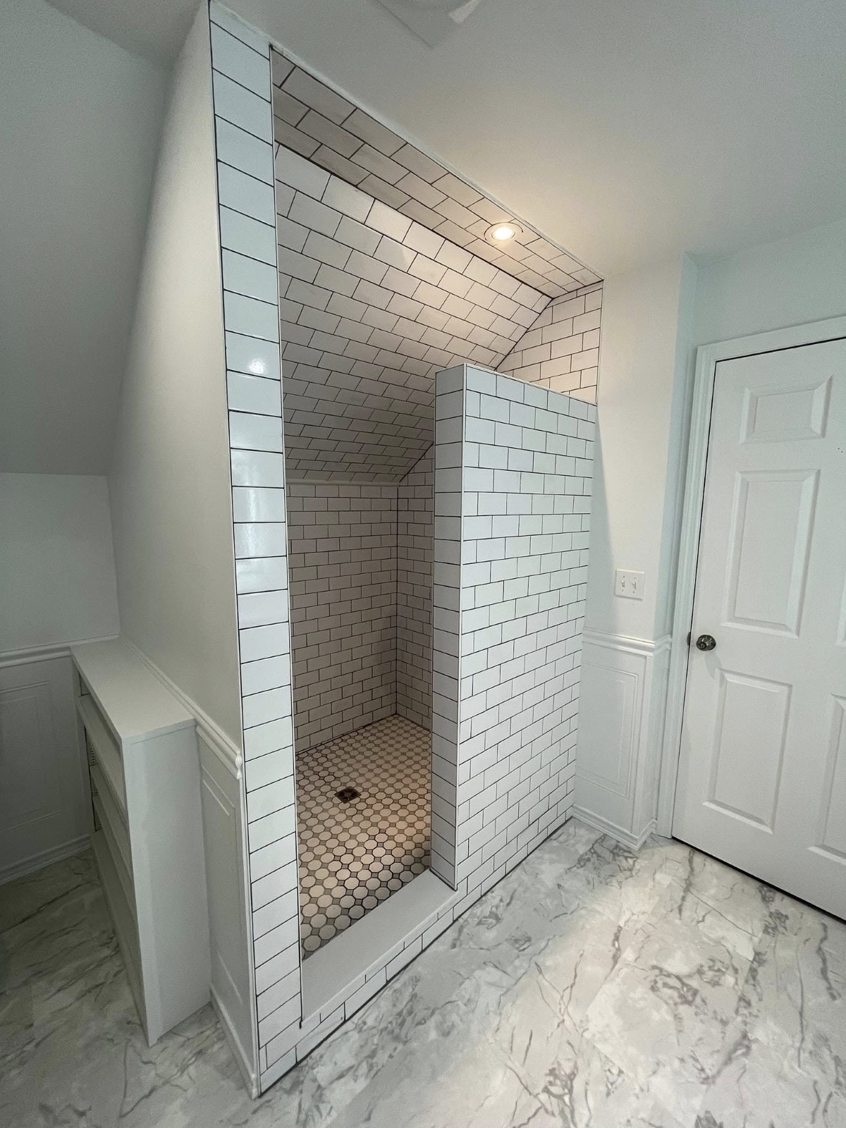 • Full gut with layout changes (relocating drains / vents, enlarging shower)
